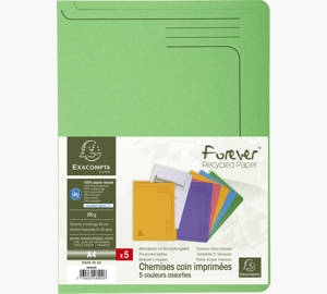 Paquet 5 chemises coin Forever® - A4 Chemise coin en carte rigide pour sous classer quelques documents parfaitement maintenus grâce à sa soudure en L....Savoir plus