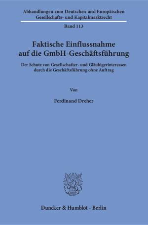 Das Problem der faktischen Geschäftsführung und die mit dieser Rechtsfigur verknüpften Rechtsfolgen beschäftigen Rechtsprechung und Literatur seit ger...Savoir plus