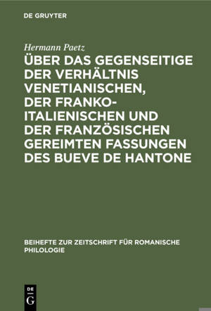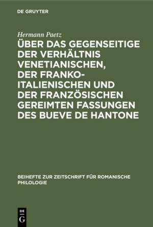 Keine ausführliche Beschreibung für "Über das gegenseitige der Verhältnis venetianischen, der franko-italienischen und der französischen gereimten Fas...Savoir plus