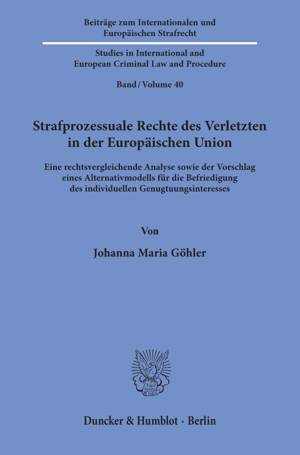Séries : livres de la série Beiträge zum Internationalen und Europäischen Strafrecht / Studies in International and European Criminal Law and Procedure