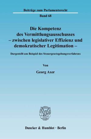 Nach wie vor sind die Grenzen der Kompetenz des Vermittlungsausschusses nicht befriedigend geklärt. Georg Axer unternimmt den Versuch, unter Anknüpfun...Savoir plus