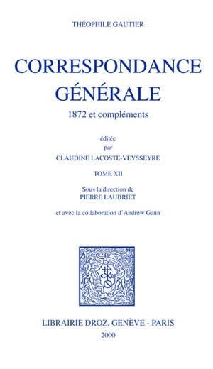 Ce dernier volume de la correspondance de Gautier comprend trois parties : les lettres de l'année 1872, terminant ainsi la publication chronologique d...Savoir plus