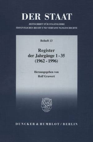 Nach fünfunddreißig Jahrgängen zieht DER STAAT, Zeitschrift für Staatslehre, Öffentliches Recht und Verfassungsgeschichte, eine Zwischenbilanz seiner ...Savoir plus