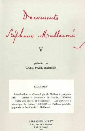 Ce Tome V des Documents Stéphane Mallarmé est presque entièrement consacré à la biographie du jeune poète et à la généalogie complète de sa famille.Savoir plus