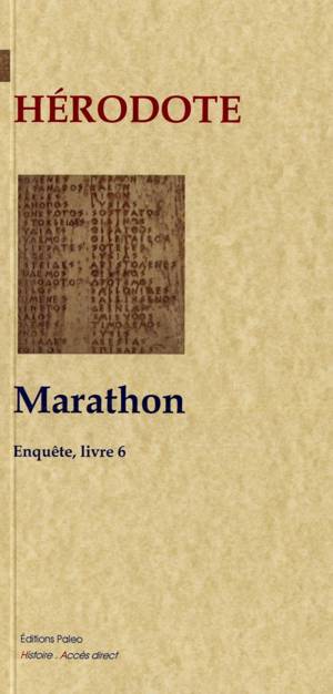 Marathon (Enquête, Livre VI) « Les Athéniens étaient rangés en bataille, et les présages étaient favorable. Un intervalle de huit stades séparait les ...Savoir plus