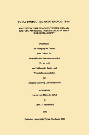 Total Productive Maintenance (TPM) ist ein strategisches, auf den Produktionssektor ausgelegtes Managementkonzept für die Instandhaltung, aus dessen I...Savoir plus