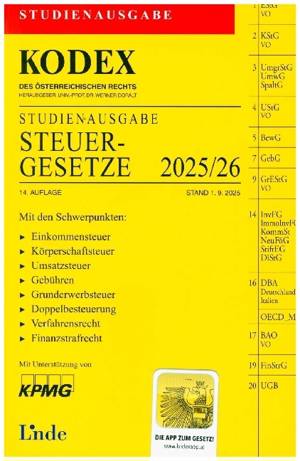 14. Auflage, Stand 1.9.2025 Mit der App zum Gesetz Ob Einkommensteuer, Körperschaftsteuer, Gebühren, Verfahrensrecht oder Finanzstrafrecht: Der "KODEX...Savoir plus
