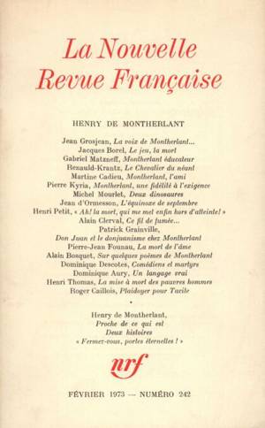 Jean Grosjean, La voix de Montherlant... Jacques Borel, Le jeu, la mort Gabriel Matzneff, Montherlant éducateur Renauld-Krantz, Le Chevalier du Néant ...Savoir plus