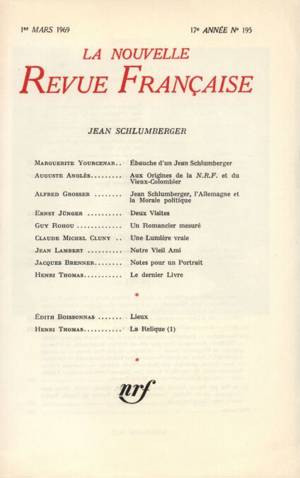 Jean Schlumberger : Marguerite Yourcenar, Ébauche d'un Jean Schlumberger Auguste Anglès, Aux origines de la N.R.F. et du Vieux-Colombier Alfred Grosse...Savoir plus