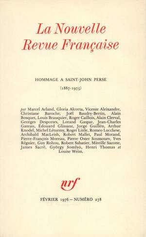 Marcel Arland, Présence de Saint-John Perse Gloria Alcorta, Saint-John Perse en voyage de noces Vicente Aleixandre, Comme d'hier Christiane Baroche, L...Savoir plus