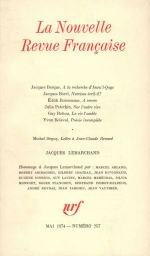 Témoignages : André Pieyre de Mandiargues, Partie gagnée Marcel Jouhandeau, Hommage à Jean Paulhan Henri Michaux, En songeant à l'avenir Roger Judrin,...Savoir plus