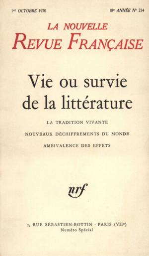 La vie : Marc Chagall, Comme un feu Jean Lacouture, Un écrivain et le journalisme Frédéric J. Grover, Entretien sur Maurice Barrès Julien Segnaire, L'...Savoir plus