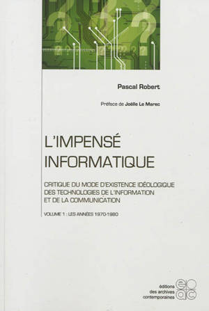 L'impensé numérique Tome 1 : des années 1980 aux réseaux sociaux L'informatique se dilue désormais dans le vaste magma du numérique. Un numérique qui ...Savoir plus