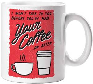 Statement mugs for the introverts in your life. "I won't talk to you before you've had your coffee . . . or after" and "Let's skip all the small talk ...Savoir plus