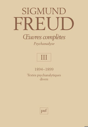 Tome I 1886-1893 Premiers textes ** Tome II 1893-1895 Études sur l'hystérie et textes annexes *** Tome III 1894-1899 Textes psychanalytiques divers * ...Savoir plus