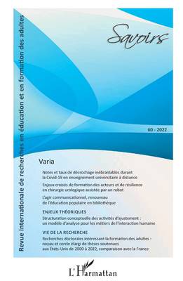 Savoirs Varia Ce numéro 60 de la revue Savoirs invite nos lecteurs et lectrices à la découverte d'articles s'inscrivant dans un panel large de secteur...Savoir plus
