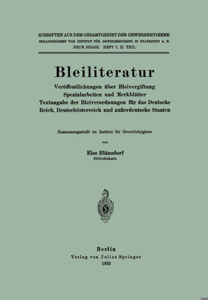 Séries : livres de la série Schriften Aus Dem Gesamtgebiet der Gewerbehygiene