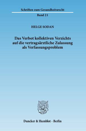 95b SGB V, der am 1. Januar 1993 in Kraft trat und seitdem unverändert gilt, verbietet den kollektiven Verzicht auf die vertragsärztliche Zulassung un...Savoir plus