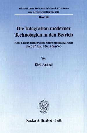 Der Autor befaßt sich mit aktuellen Fragen der Integration moderner Technologien in den Betrieb. Hierbei steht die Vorschrift des 87 Abs. 1 Nr. 6 Betr...Savoir plus
