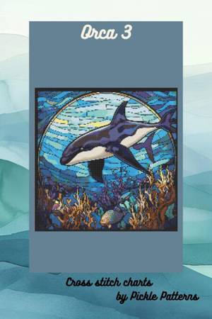 These cross stitch charts are a whimsical design of an orca or killer whale reminiscent of art nouveau stained glass. The image is 200x200 stitches. T...Savoir plus