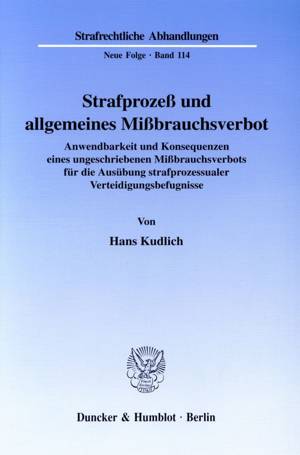 Die Frage nach dem Mißbrauch prozessualer (Verteidigungs-) Befugnisse im Strafprozeß und der Geltung eines allgemeinen Mißbrauchsverbots wurde in den ...Savoir plus