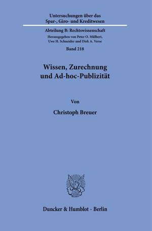 Im Mittelpunkt der Untersuchung steht die Frage, wann sich ein Emittent im Rahmen seiner Ad-hoc-Publizitätspflicht nach Art. 17 MAR und 97 WpHG zurech...Savoir plus
