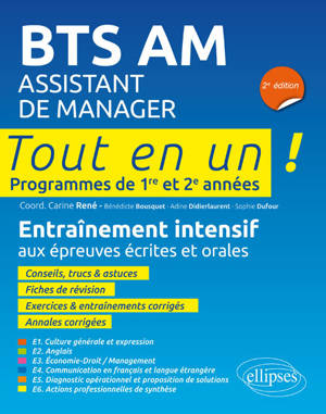 BTS AM Assistant de manager 2 e édition Tout en un 1 re & 2 e années Entraînement intensif Épreuves écrites et orales de l'examen Connaissances et ent...Savoir plus