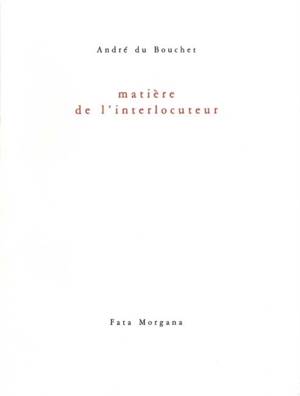 Ce recueil des entretiens qu' André du Bouchet donna à Alain Veinstein , de 1979 à 2000, le dernier ayant été enregistré quelques mois avant sa mort, ...Savoir plus
