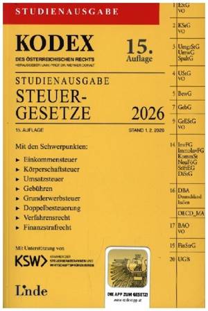 15. Auflage, Stand 1.2.2026 Mit der App zum Gesetz Ob Einkommensteuer, Körperschaftsteuer, Gebühren, Verfahrensrecht oder Finanzstrafrecht: Der "KODEX...Savoir plus