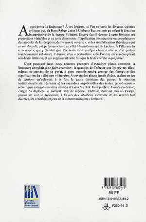 Examine la question de la littérature dite adressée, c'est-à-dire une littérature qui manifeste la présence de son destinataire. Avouée ou déniée, éla...Savoir plus