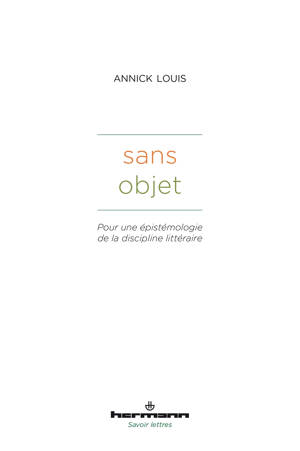 Sans objet Pour une épistémologie de la discipline littéraire Comment se produit le savoir dans la discipline littéraire ? De quel type de savoir s'ag...Savoir plus