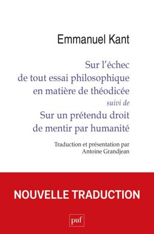 Sur l'échec de tout essai philosophique en matière de théodicée suivi de Sur un prétendu droit de mentir par humanité Si le mal est ce qui doit ne pas...Savoir plus
