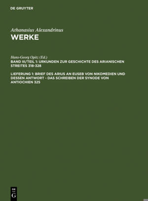 Die Athanasius Werke werden seit 1934 im Verlag Walter de Gruyter verlegt. Sie publizieren kritische Editionen der Werke des Athanasius von Alexandrie...Savoir plus