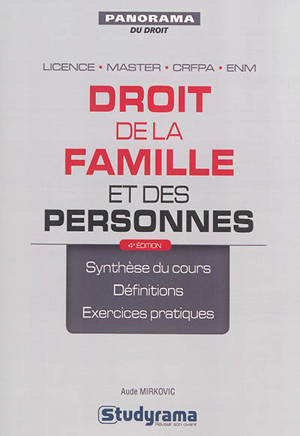 Panorama du droit Droit de la famille et des personnes La 4 e édition de cet ouvrage couvre l'ensemble du programme de droit de la famille et des pers...Savoir plus