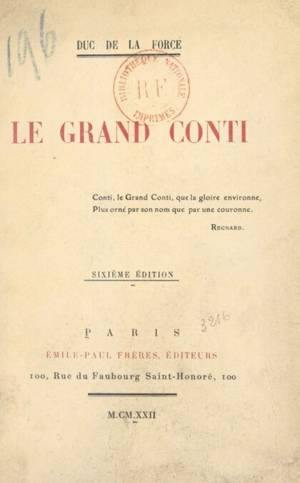 « Le grand Conti » reste un des personnages les plus attachants, les plus doués aussi de notre histoire et qui, à l’un des sommets de celle-ci, fut « ...Savoir plus