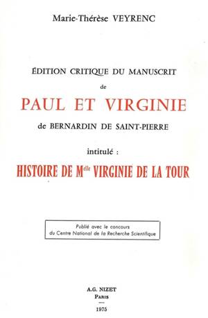 Étude analytique extrêmement minutieuse du manuscrit de Paul et Virginie , que Bernardin de Saint-Pierre avait intitulé "Histoire de Mlle Virginie de ...Savoir plus