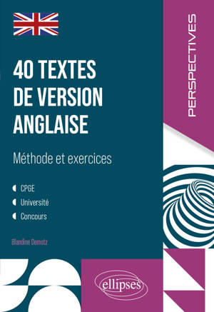 40 textes de version anglaise Méthode et exercices Ce manuel est conçu pour les étudiants et les étudiantes qui souhaitent s'exercer à la version à l'...Savoir plus