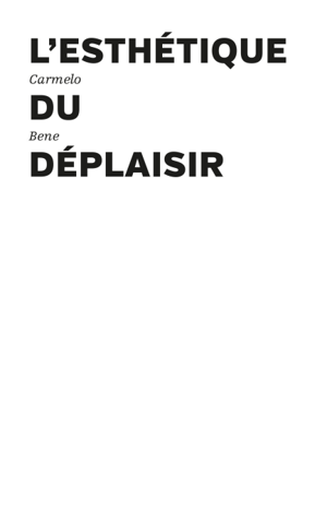 L'esthétique du déplaisir Au croisement des arts, l'oeuvre de Carmelo Bene - acteur, auteur et metteur en scène, pour le théâtre, le cinéma et la télé...Savoir plus
