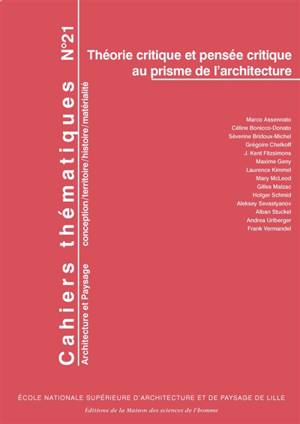 Ce numéro des Cahiers thématiques est consacré aux relations entre architecture et « Théorie critique », telle que cette dernière a été initiée par le...Savoir plus