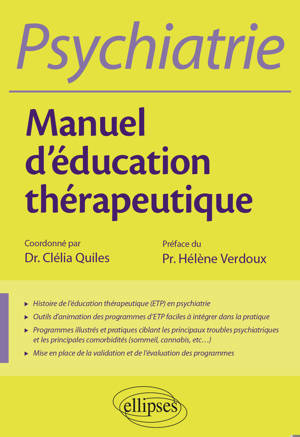 Psychiatrie Manuel d'éducation thérapeutique Les programmes d'éducation thérapeutique portant sur des troubles psychiatriques se sont largement dévelo...Savoir plus