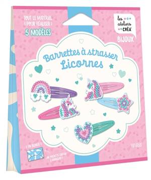 Tout le matériel utile et des instructions techniques pour confectionner cinq barrettes à cheveux sur le thème des licornes. Avec une feuille imprimée...Savoir plus