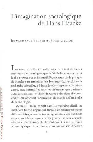 L'imagination sociologique de Hans Haacke Traduction longtemps attendue d'un essai consacré au travail de l'artiste Hans Haacke, sans doute le plus em...Savoir plus