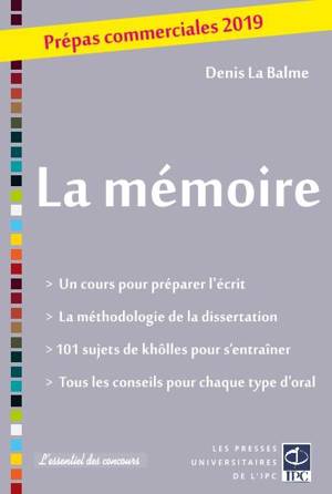 Prépas commerciales 2019 La mémoire La mémoire est l'un des principes de notre unité et de notre identité personnelles, c'est pourquoi nous voulons l'...Savoir plus