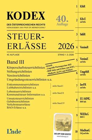40. Auflage, Stand 1.3.2026 Mit der App zum Gesetz BAND III - Körperschaftsteuerrichtlinien - Stiftungsrichtlinien - Vereinsrichtlinien - Umgründungss...Savoir plus
