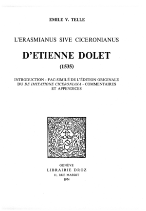 Edition en fac-similé du texte d'Etienne Dolet : Stephani Doleti Dialogus, De Imitatione Ciceroniana, adversus Desiderim Erasmum Roterodamum, pro Chri...Savoir plus