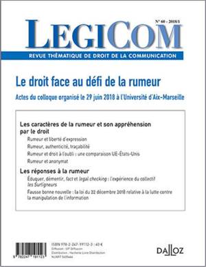 Contributions sur la place et le rôle du droit face à la rumeur qui, augmentée d'une dimension numérique nouvelle, lui pose un véritable défi. Pris en...Savoir plus