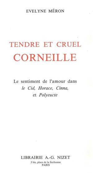 Étude du sentiment amoureux dans les quatre plus belles tragédies de Corneille, Le Cid, Horace, Cinna et Polyeucte . Contre une tradition répandue d'u...Savoir plus