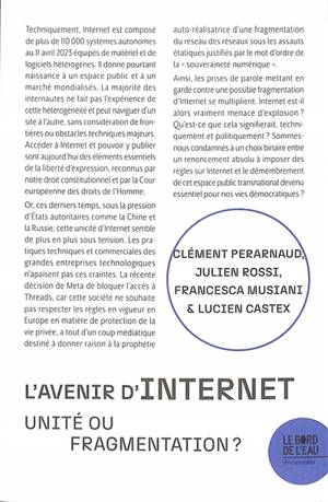 L'avenir d'internet Unité ou fragmentation ? « L'Internet s'est progressivement peuplé de frontières et barrières techniques, économiques, géopolitiqu...Savoir plus