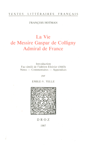 La biographie de Coligny par François Hotman est un texte de 1575 presque totalement inconnu, parce qu'écrit en latin. Emile V. Telle, qui reproduit i...Savoir plus