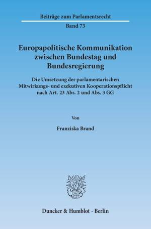 Die Zusammenarbeit zwischen Bundestag und Bundesregierung in EU-Angelegenheiten bleibt ein aktuelles Thema, zuletzt im Rahmen der Finanzkrise. Die vor...Savoir plus